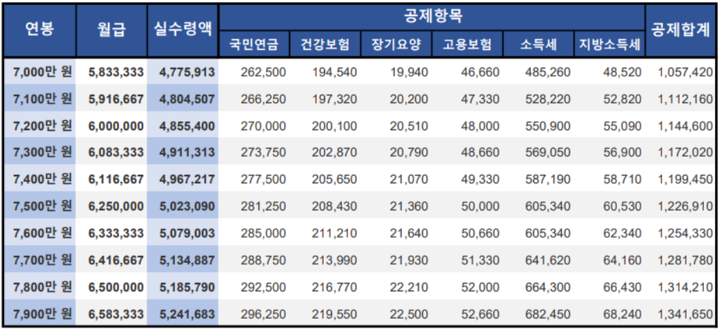 [2021년 연봉 실수령액 7,000만원~7,900만원 산정]