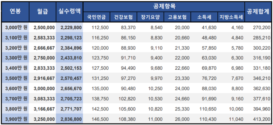 [2021년 연봉 실수령액 3,000만원~3,900만원 산정]