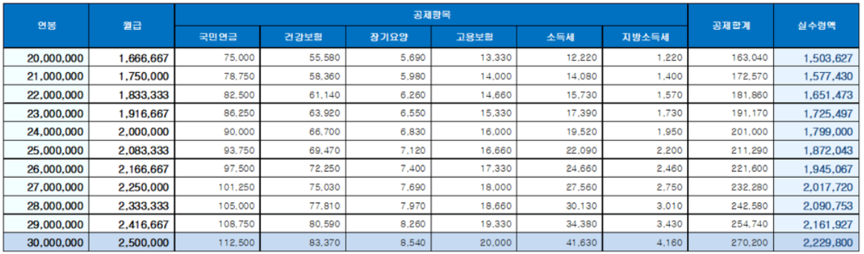 ■ 2020 연봉 실수령액을 산정