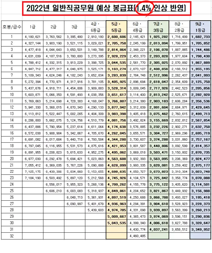 2022년 공무원 봉급표 월급에 대해 알아 보자.