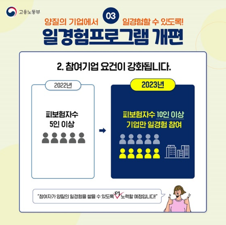 [2023년] 피보험자수 10인 이상 기업만 일경험 참여