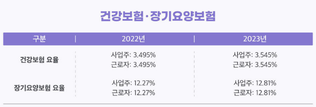 건강보험은 6.99%(2022년)에서, 7.09%(2023년)로 오릅니다.