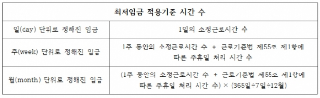 *1주 소정근로 40시간, 주당 유급주휴 8시간 포함 월 환산기준 209 시간
