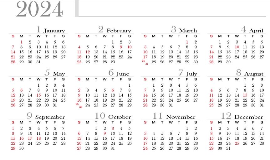 2024년도는 2월이 하루 많은 29일로 1년이 366일이 됩니다.