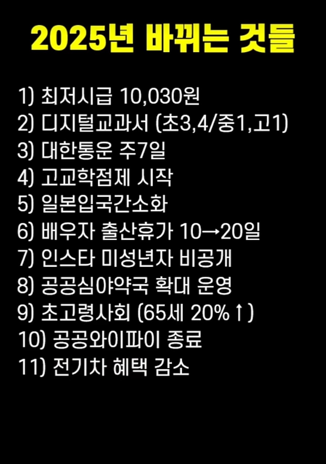2025년 을사년(乙巳年) 달라지는 주요 내용들
