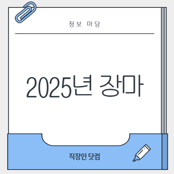 2025년 장마 시작일은 6월 중순 ~ 하순경으로 예상됩니다.
