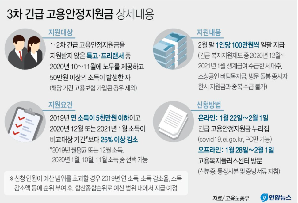 ▶3차 긴급 고용안정지원금 신청날짜 시간
