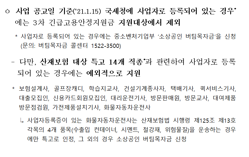 3차 긴급 고용안정지원금에 대한 자세한 사항은 전담 콜센터(☎1899-9595) 또는 신청 홈페이지 covid19.ei.go.kr 를 통해 확인할 수 있다.