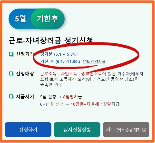 근로장려금 신청은 정기·반기신청으로 구분됩니다.