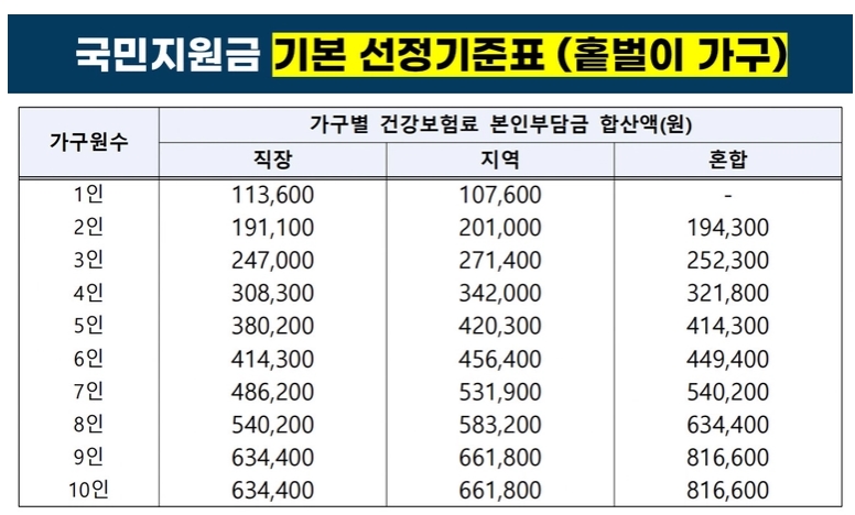 건강보험료 납부 기준으로 가구원 1명을 더해 5인 가구 건보료 기준을 적용한 것이다.