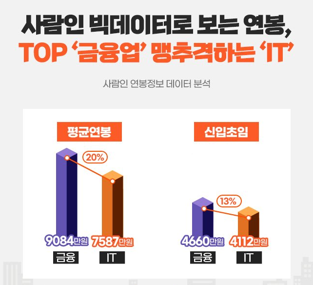 이번 시간에는 최근에 발표된 기사을 토대로 IT업계 평균연봉과 가장 높은 연봉을 받는 업종은 어디인지 알아보자!